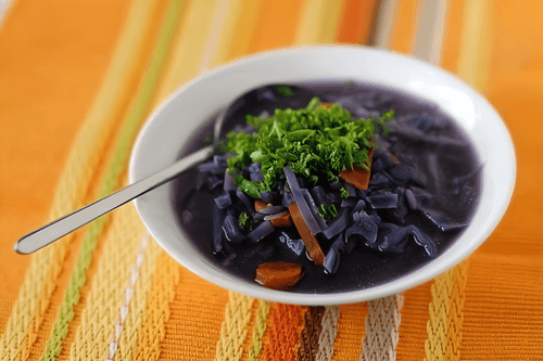 Этот необычный суп из краснокочанной капусты с копченой курицей имеет глубокие корни в китайской кухне, сочетая сладость капусты и дымный аромат курицы. Его насыщенный пурпурный цвет делает блюдо не только вкусным, но и эффектным на столе. Пряности, такие как гвоздика, корица и мускатный орех, придают супу теплый восточный оттенок, а красный винный уксус добавляет пикантности и балансирует сладость овощей. Картофель и морковь делают его сытным, а зелень петрушки придаёт свежесть. Этот суп идеально подходит для холодных вечеров, когда хочется согреться богатым, ароматным и насыщенным вкусом. Он прекрасно сочетается со свежим хлебом или рисом, а его нежная копченая курица делает каждую ложку незабываемой.