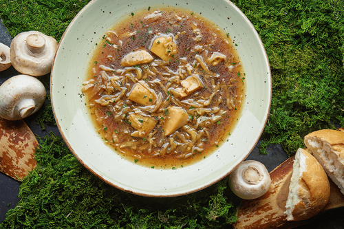 Постный суп с томленой капустой и грибами — это теплое воспоминание о русской кухне, где простые ингредиенты превращаются в настоящее кулинарное искусство. Запеченная капуста придает блюду глубокий, карамелизированный вкус, а белые грибы — насыщенность и аромат леса. Грибной бульон обволакивает все компоненты, создавая гармонию вкусов. Легкая кислинка томатов и пряность тимьяна дополняют мягкость капусты и насыщенность грибов. Этот суп согревает душу, оставаясь легким и питательным. Идеальный выбор для постных дней, он отлично сочетается с ржаным хлебом или свежей зеленью. В каждом глотке ощущается уют и традиции русской гастрономии, даря вкусное и сытное удовольствие.