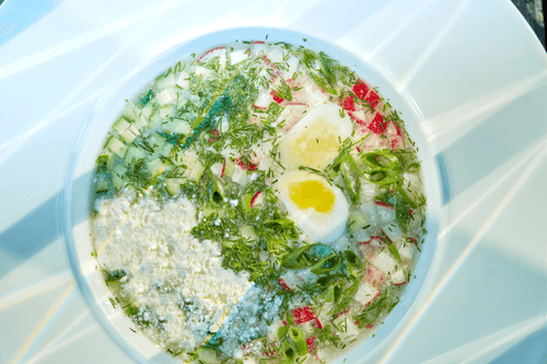 Тщательно перемешиваем все ингредиенты – окрошка готова!