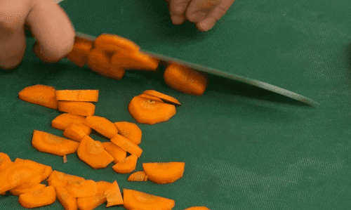 Произвольно нарезать картофель и морковь.
