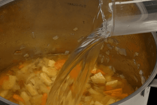 Залить все двумя литрами воды, довести до кипения и варить до мягкости овощей 20–30 минут.