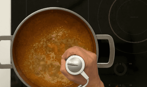 Пробить суп погружным блендером, посолить, поперчить.