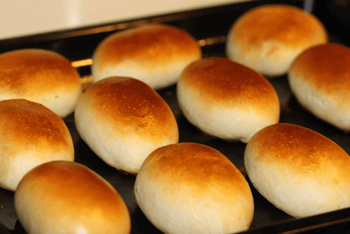Выложить на противень. После расстойки, обычно хватает 5 минут, смазать пирожки желтком, взбитым с 1 ч. л. воды, и отправить в духовку.