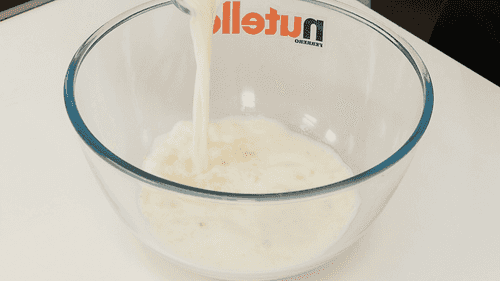 Смешать теплое молоко (температура молока должна быть не ниже 37 и не выше 40 градусов) с дрожжами и сахаром при помощи венчика, оставить на 5 минут, чтобы дрожжи активировались.