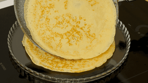 Выпекать блины на среднем огне, смазав сковородку растительным маслом, до золотистого цвета.