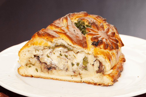 Пирог с сердечками кролика — редкое и утонченное блюдо русской кухни, соединяющее изысканность и душевное тепло домашней выпечки. Его происхождение уходит в традиции сельских хозяйств, где ценили каждую часть животного. Нежное, рассыпчатое тесто с ароматом пармезана гармонично дополняет сочную начинку из кроличьих сердечек, томленных в сливках с луком и беконом. Вкус этого пирога богатый, мягкий и слегка пряный благодаря розовому перцу. Это блюдо подойдет для особых случаев, когда хочется удивить гостей нетривиальным угощением. Подается горячим, с зеленью и бокалом белого вина, усиливая его нежные мясные ноты. Пирог с сердечками кролика — настоящее гастрономическое открытие для ценителей нестандартных вкусов.