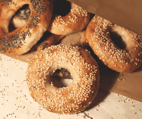 Бейглы – культовая выпечка еврейской кухни, появившаяся в Восточной Европе и ставшая любимым лакомством по всему миру. Их неповторимый вкус – хрустящая корочка и мягкий, слегка жевательный мякиш – достигается благодаря уникальному процессу варки перед запеканием. Домашние бейглы готовятся из простых, но гармоничных ингредиентов: муки, дрожжей, сахара, соли и воды, а финальный штрих – окунание в медовый сироп – придает им легкую сладость и аппетитный блеск. Эти ароматные булочки отлично сочетаются с крем-сыром, копченым лососем или просто маслом, а кунжут или мак добавляют приятный ореховый вкус. Они идеально подходят для завтрака или сытного перекуса, наполняя дом уютом и теплом традиций.