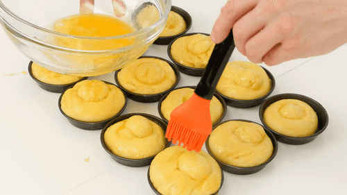 Смазать яйцом расстоявшиеся булочки. Отправить их в духовку, разогретую до 190 градусов, примерно на 18 минут. Булочки должны стать золотисто-коричневыми.