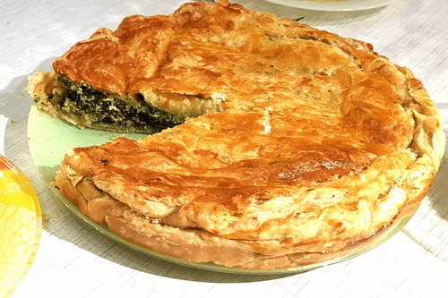 Спанакопита — одно из самых известных блюд греческой кухни, воплощение богатых вкусов и текстур Средиземноморья. Этот ароматный пирог из слоеного теста с нежной начинкой из шпината, феты и твердого сыра создаёт гармонию между сливочной нежностью и хрустящей корочкой. История блюда восходит к древним временам, когда в Греции использовали зелень и сыры в выпечке. Современная спанакопита — это не только традиционное блюдо, но и универсальная закуска, которая прекрасно сочетается с свежими салатами и соусами. Ее можно подавать как основное блюдо или как часть праздничного стола. Золотистая корочка и насыщенный вкус делают спанакопиту идеальным выбором для любителей средиземноморской кухни.