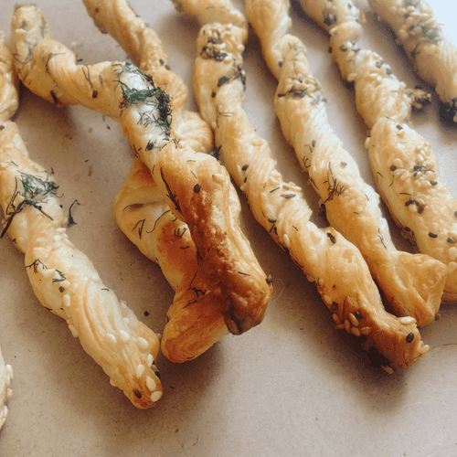 Итальянские хлебные палочки — это хрустящее лакомство, пришедшее к нам из самой глубины традиционной итальянской кухни. Их история восходит к XVII веку, когда придворный пекарь придумал лёгкий и хрустящий хлеб для герцога Савойского. С тех пор они стали неотъемлемой частью итальянского обеда, идеально дополняя супы, салаты и антипасти. В этом рецепте классические хлебные палочки приобретают аромат чеснока, свежесть укропа и изысканность семян чиа и кунжута. Их вкус богатый, с хрустящей корочкой и мягкой текстурой внутри, а приятная солоноватость розовой гималайской соли придаёт им особый шарм. Они прекрасно подходят как самостоятельная закуска или дополнение к сырам и соусам, привнося нотку итальянского очарования в любое застолье.