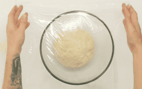 Готовое тесто обмять на столе, придать форму шара, переложить в смазанную растительным маслом чашу, накрыть пленкой и поставить в теплое место на 2 часа.