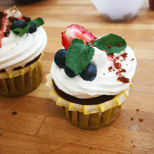 Можно украсить капкейк свежими ягодками, кусочками фруктов, кондитерскими посыпками, бусинами, шоколадной крошкой или веточкой мяты.