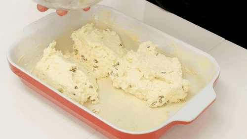 Переложить творожную массу в форму.