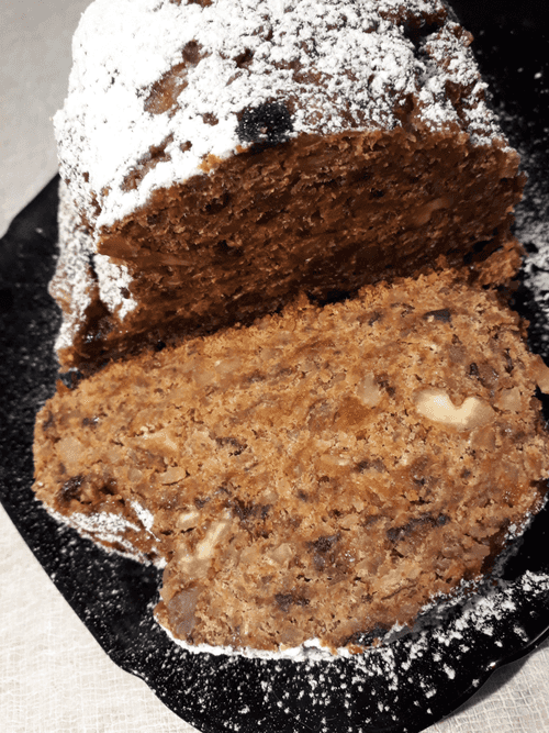 Рождественский кекс из сухофруктов — это ароматное и насыщенное лакомство, традиционно подаваемое в холодные зимние месяцы. Корни этого угощения уходят в немецкую кухню, где такие кексы, напоминающие штоллен, украшают праздничные столы уже сотни лет. Сочетание фиников, чернослива, кураги и орехов создаёт глубокий, сладкий вкус с тонкими карамельными и древесными нотками, а овсяная мука придаёт тесту нежную, мягкую структуру. После запекания кекс приобретает насыщенный аромат и лёгкую хрустящую корочку. Присыпанный сахарной пудрой, он становится не только изысканным десертом, но и символом уюта и тепла Рождества. Идеально подходит к чашке горячего чая или кофе, а также как сладкий подарок для близких.