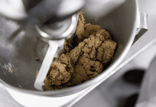 Затем вымесить тесто руками, пока оно не станет гладким, однородным. Накрыть тесто пленкой и убрать в холодильник на час.
