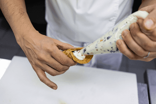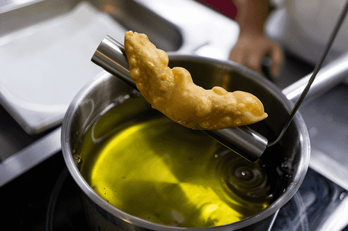 Нагреть масло до 180 градусов. Опустить туда трубочку. Примерно через 2 минуты она готова. Вытащить трубочку, откинуть на салфетку, чтобы лишнее масло стекло и канноли остыли. Форма у канноли может быть разная. Например, трубочка может получиться не плоской с одной стороны, а изогнутой, как месяц. Она не будет лежать на тарелке, будет переворачиваться, но ничего страшного в этом нет. Это же канноли! Приготовленные трубочки можно хранить в течение 3 недель в сухом месте — и использовать по мере необходимости.