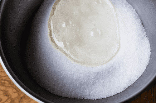 В отдельную емкость всыпать 860 грамм сахара и вылить 200 мл глюкозы. Оставить так, не перемешивая.