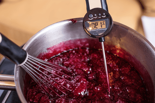 Процесс уваривания нужно остановить в тот момент, когда температура внутри массы достигнет 106 градусов (электронный кулинарный термометр — незаменимая вещь!). Измерение температуры нужно для того, чтобы понять, что масса достигла нужной плотности. Для большинства мармеладов это 106 градусов. Для мармеладов из кислых продуктов, в которых много влаги (лимона или ананаса и, кстати, груши), это 107 градусов. Один градус имеет значение: мармелад из груши, остановленный на 106 градусах, нельзя будет нарезать, он будет тянуться за ножом, то есть его плотность будет недостаточной.