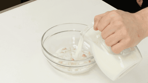Дрожжи смешать со столовой ложкой сахара и 100 мл теплого молока. Оставить на 5–10 минут, пока на поверхности не появятся пузыри.