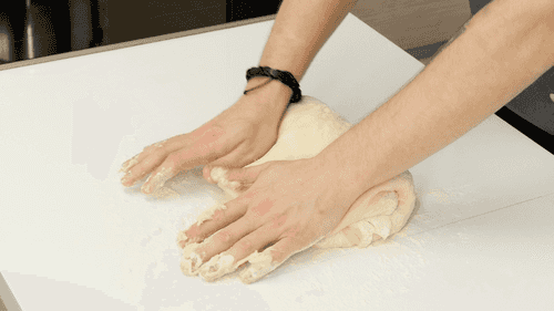 Добавить к тесту оставшуюся муку и вымесить тесто. Все это можно делать миксером, но завершить вымешивание теста обязательно руками. Тесто не должно быть очень крутым, но и прилипать к рукам тоже не должно. Переложить тесто в большую емкость, накрыть пленкой и убрать в теплое место еще на 40–60 минут. Оно должно увеличиться вдвое.