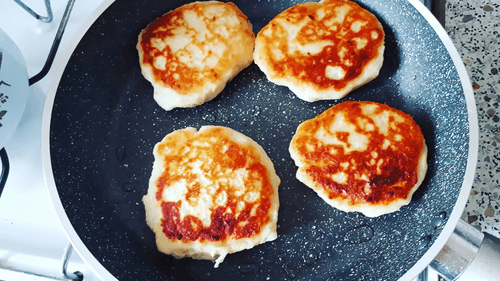 На раскаленную сковороду распылить масло (или смазать кистью) и выкладывать оладьи. Если смесь получится жидкая, то можно выкладывать ложкой или маленьким половником, если получится «тестом», то можно слепить толстенькие оладушки руками.