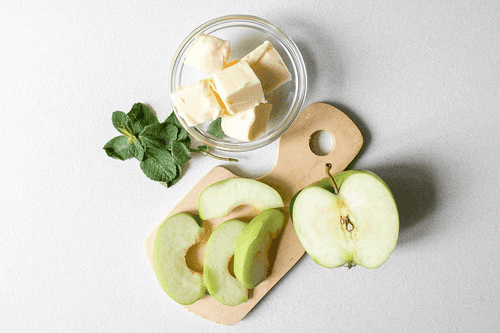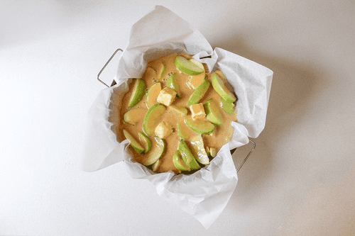 Уложить яблоки в форму. Добавить 3–4 кубика спреда.
