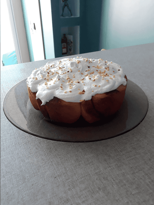 Рулет разделить на 8 частей. Чашу мультиварки смазать маслом, выложить булочки по кругу плюс одну в центр на небольшом расстоянии друг от друга, так как они увеличатся в размерах в процессе выпечки.