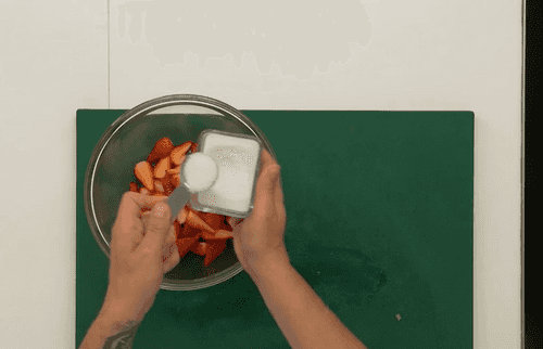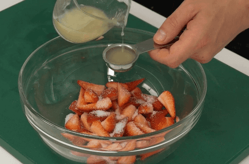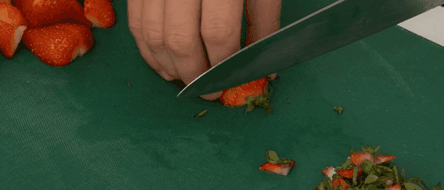 Четверть самой красивой клубники нарезать на половинки или четвертинки.
