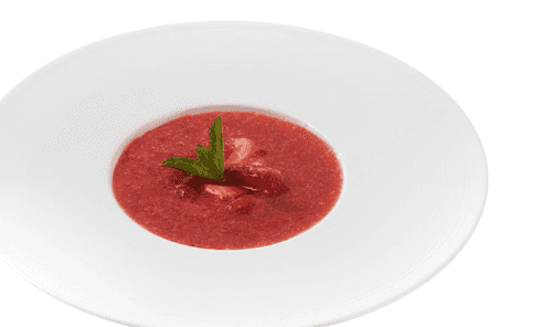 Перед подачей перемешать сок, который скопился в миске с нарезанной клубникой, с супом.
