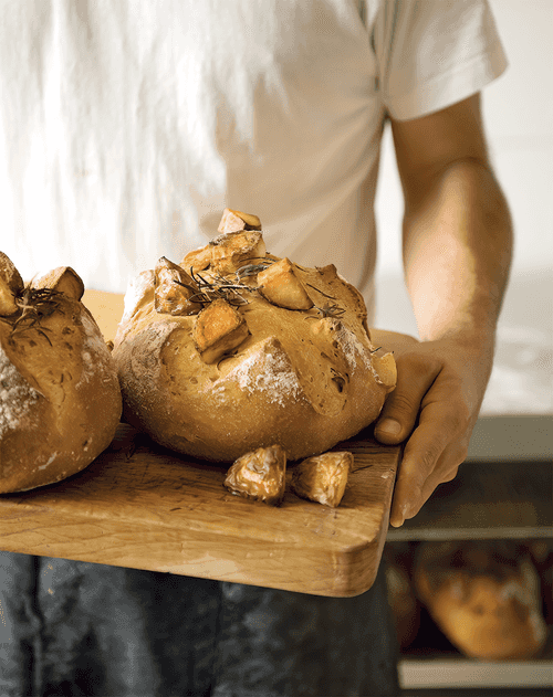 Этот рецепт картофельного хлеба изначально предназначен для приготовления на дрожжах, однако с ним можно поэкспериментировать, добавив закваску. В результате хлеб получится с легкой и воздушной текстурой, а также с чистым вкусом. Если же вы решите добавить семена чернушки и заменить обычную муку цельнозерновой, то получите совершенно другое изделие — хлеб на закваске станет более плотным, с толстой и немного резиновой корочкой, а его вкус будет насыщен специями. Такой хлеб, обогащенный кусочками картофеля и ароматным розмарином, порадует своей простотой и изысканностью.