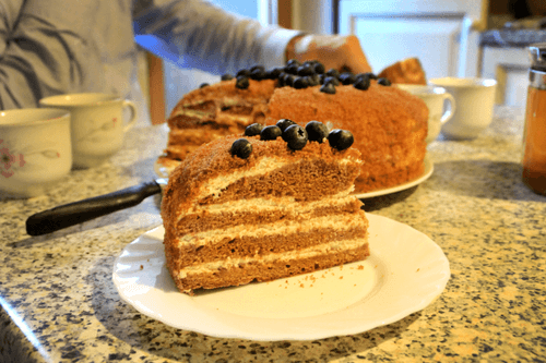 Готовый торт необходимо остудить в холодильнике, лучше всего оставить на ночь или на день, чтобы все хорошенько застыло.