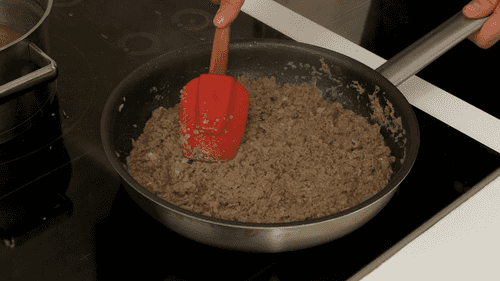 Вареное мясо пропустить через мясорубку. В сковороде на растительном масле обжарить одну мелконарезанную луковицу до прозрачности, затем добавить фарш и немного бульона из-под мяса, посолить по вкусу. Тушить 10–15 минут, затем снять с огня и дать остыть.