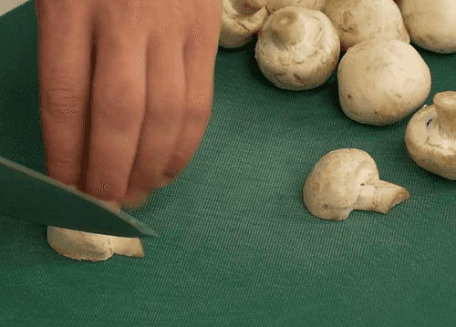 Для грибной начинки луковицу и грибы нарезать кубиком одинакового размера.