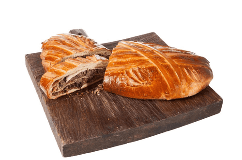 Кулебяка — это традиционный русский пирожок, в котором сочетаются разные начинки, разделенные тонкими блинами. Эта выпечка была популярна как среди бедных, так и среди богатых, хотя представители высшего общества иногда использовали более изысканные ингредиенты. В нашем варианте мы предлагаем начинку из мяса, гречки и грибов, но возможности для кулинарного творчества безграничны — можно использовать почти любые продукты.