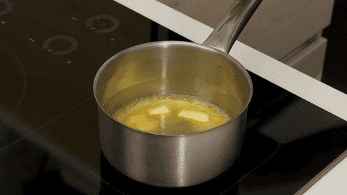 Растопить сливочное масло, смешать его с растительным маслом.