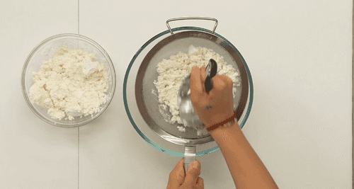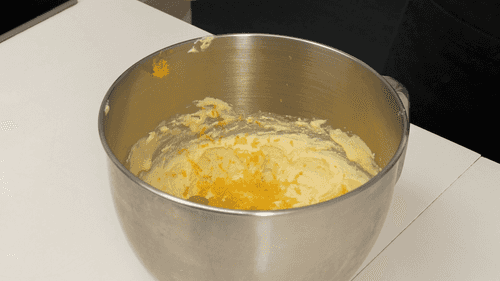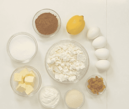 Взбить желтки со 130 граммами сахара добела, затем добавить творог, манку и 110 г размягченного сливочного масла, вымесить до однородной массы.
