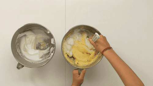 В отдельной чистой и сухой чаше взбить белки до мягких пик. Постепенно добавить их к творожной массе, аккуратно вмешивая силиконовой лопаткой и двигаясь снизу вверх.