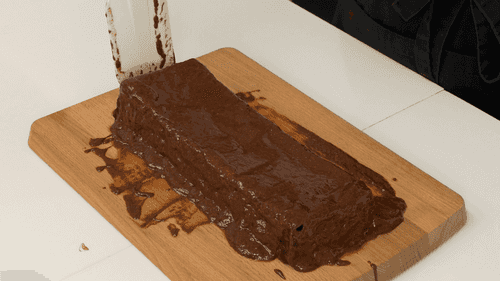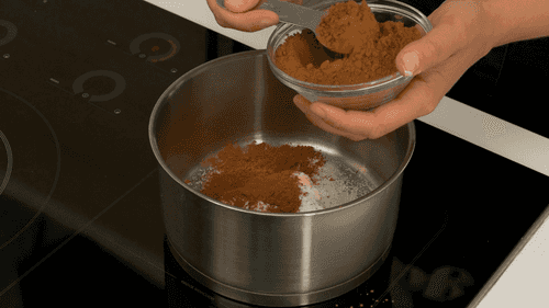 В небольшом сотейнике прогреть 70 грамм сливочного масла с 40 граммами сахара и какао-порошком до растворения сахара. Затем добавить сметану и перемешать до однородной массы.
