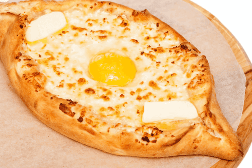 Хачапури по-аджарски – это жемчужина грузинской кухни, родом из солнечного Аджарии. Этот вид хачапури, формой напоминающий лодочку, стал одним из самых узнаваемых блюд Грузии. Его начинка — нежный сулугуни и имеретинский сыр, которые плавятся, создавая аппетитную тягучую текстуру. Завершающий штрих — свежий яичный желток и кусочек сливочного масла, добавляемые перед подачей, что делает вкус насыщенным и бархатистым. Есть хачапури следует отламывая края теста и макая их в тёплую, ароматную начинку. Это блюдо символизирует гостеприимство и радость, его подают на праздники и семейные застолья. Оно идеально сочетается с свежими овощами и зеленью, а также традиционным грузинским вином.