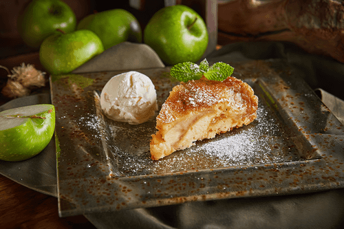 Этот вариант шарлотки требует использования как сметаны, так и сливочного масла. Для подачи рекомендуем дополнить десерт порцией мороженого и слегка присыпать сахарной пудрой. Именно так этот десерт готовится в ресторане «Ача-чача».