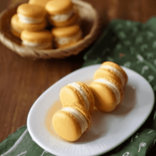 Пирожное макарон с творожно-грушевым кремом
