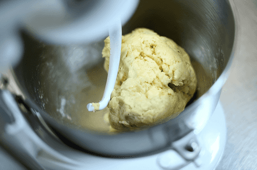Если комок будет суховат или тесто будет долго собираться, добавить немного холодного молока — около 15 мл. Точное количество будет зависеть от влагоемкости муки. Продолжать замешивать на второй или третьей скорости, пока комок не станет гладким, на это уйдет еще примерно 10 минут.