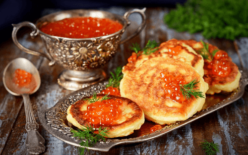 Оладьи с красной икрой