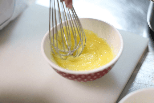 В миске соединить яйца, сахар, соль и взбить венчиком или миксером в пышную бледную массу.