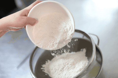 Муку в три приема просеять в яичную массу, каждый раз хорошо размешивать венчиком или миксером.