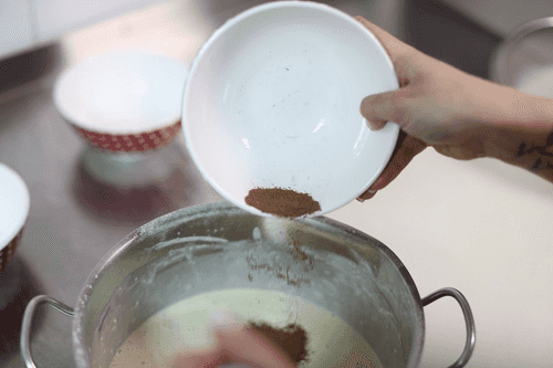Добавить какао и снова перемешать.