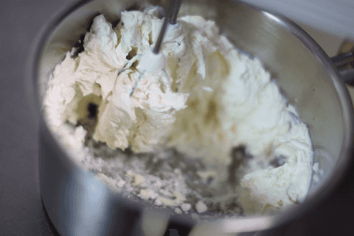 Сливочное масло заранее достать из холодильника — оно должно стать мягким. Сыр, напротив, лучше использовать холодный: он лучше взобьется. Выложить сыр вместе с сахарной пудрой и маслом в чашу миксера.