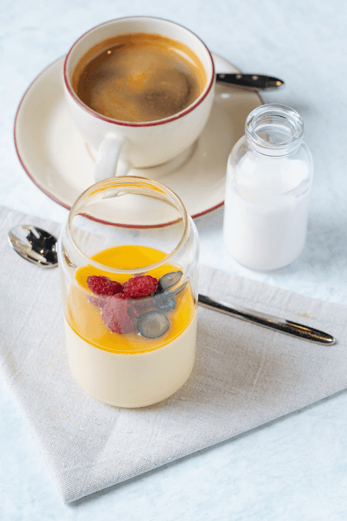 Убрать в холодильник, чтобы панна-котта застыла, — минимум на 3 часа, а лучше на ночь.
