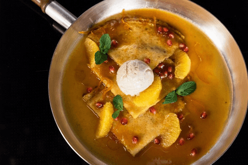 Креп-сюзетт, известный как «блинчики Сюзетты», — это изысканный французский десерт, который состоит из нежных блинчиков, пропитанных насыщенным карамельно-апельсиновым соусом. Галина Солодухина, геф-кондитер из ресторана «BRASSERIE МОСТ», любезно поделилась с нами этим рецептом.