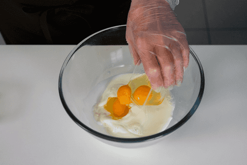 Все ингредиенты должны быть комнатной температуры. Налить в емкость молоко, добавить яйца и желток, 12 грамм сахара, 3 грамма соли, 12 грамм размягченного сливочного масла и пшеничную муку высшего сорта. Порядок добавления ингредиентов в тесто может быть любым.